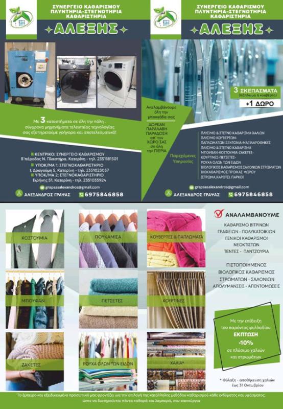 Αλυσίδα Καθαριστηρίων “Αλέξης” Κατερίνη Πιερίας.